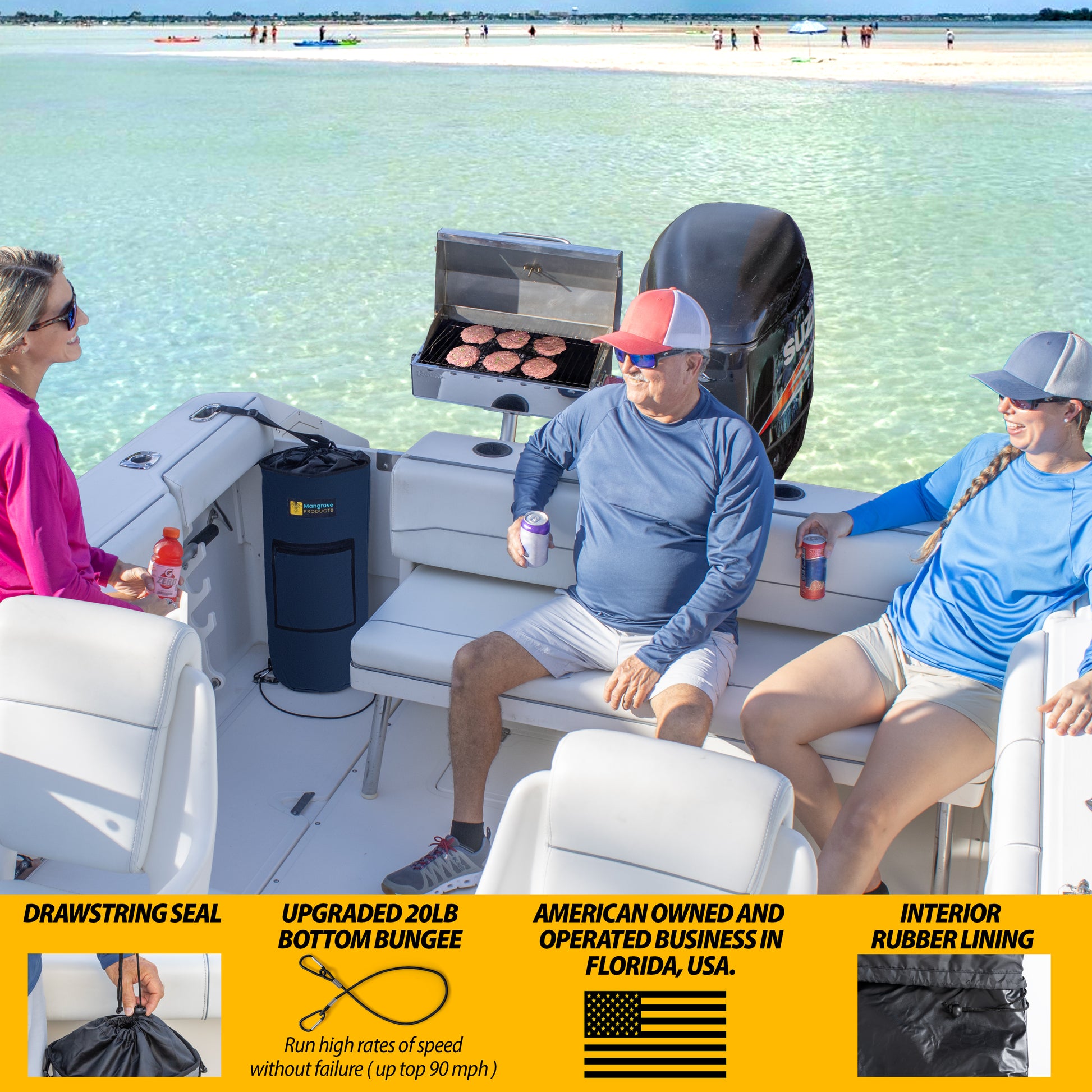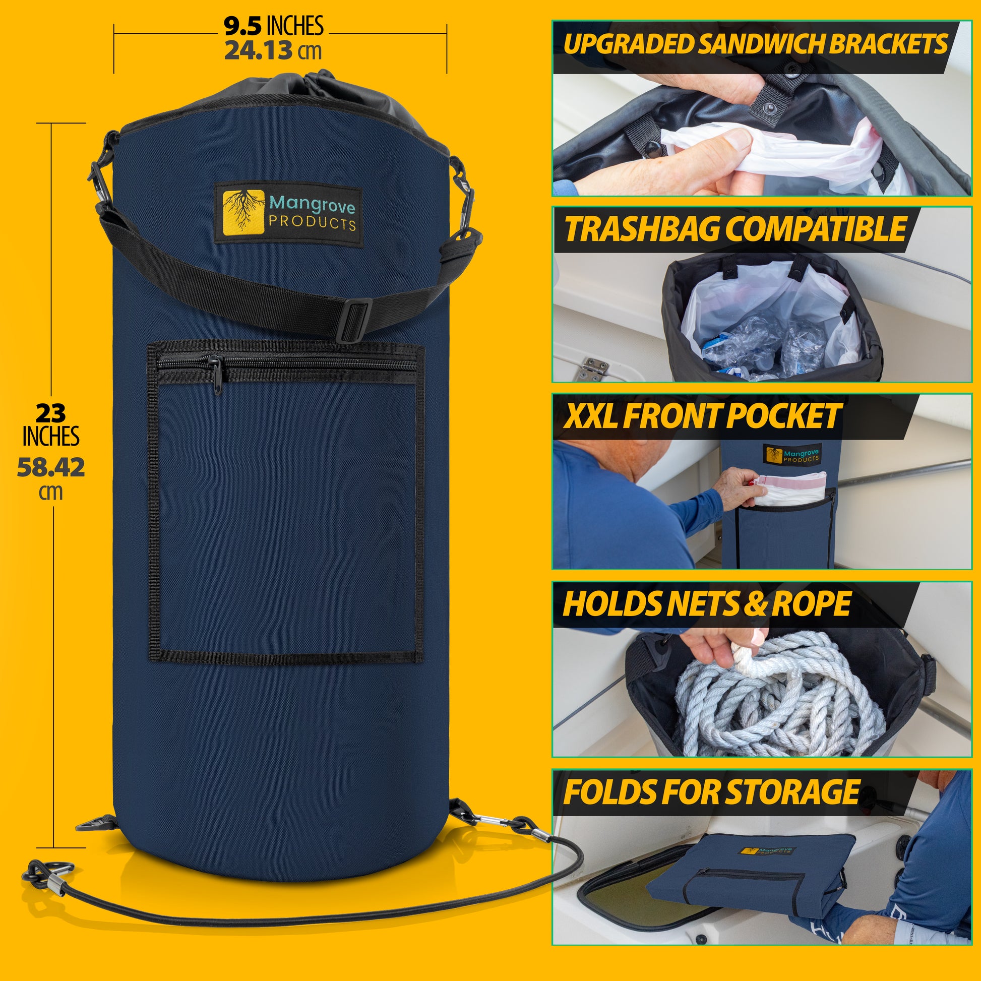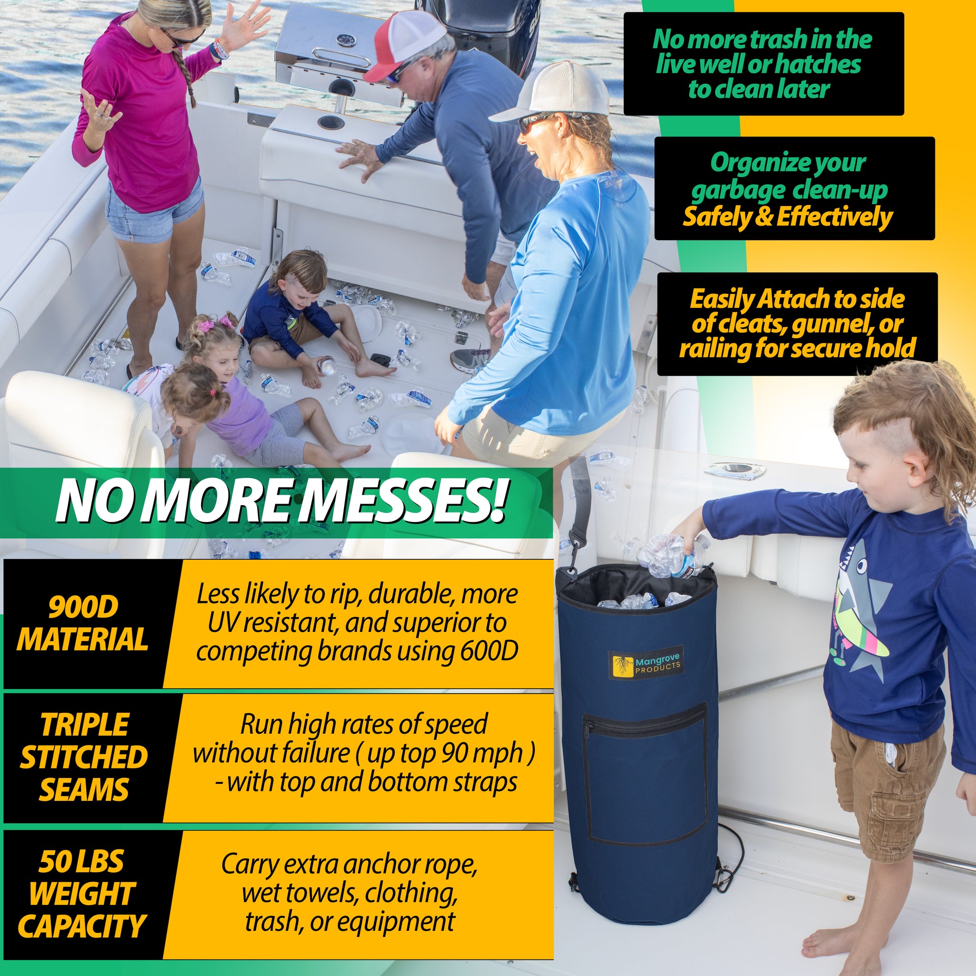 ✅Ant Prevention & Odor-Free: The boat trash can features a secure top drawstring lid that seals tightly, effectively containing trash and preventing ants from being attracted to your garbage. This design helps eliminate clutter and keeps your boat cleaner and more organized. Our advanced odor-free inner rubber technology by Mangrove Products ensures that unpleasant smells are controlled, maintaining a fresh and pleasant environment on your boat. You no longer need to worry about strong odors disrupting your trip or attracting unwanted pests. By keeping odors contained and reducing trash visibility, this trash bag enhances your overall fun boating experience. It’s an essential boat accessory for a more enjoyable and hassle-free boating trip.